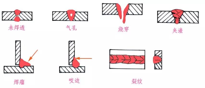 由于焊接中的各種缺陷(見下圖)以及焊縫熱影響區組織的變化,焊接的測試尤為重要。