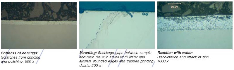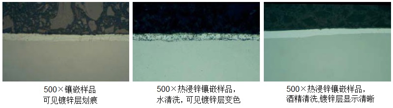 因為鍍鋅層的制備工藝方法不同,鍍鋅層的硬度和厚度變化很大,對金相試樣的制備要求是不同的。制備過程中,鋅與水的反應帶來額外的困難。